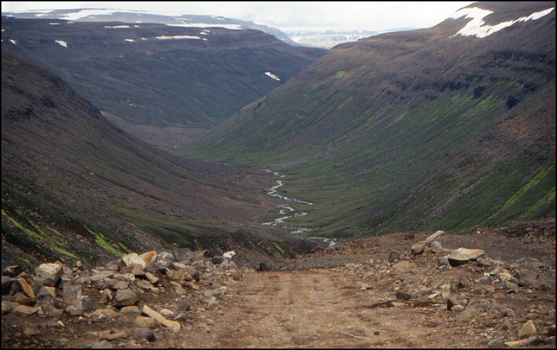 die Piste F821 von Lauafell hinunter ins Eyjafjaršardalur