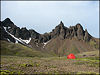 Aber es ist der Blick aus dem Zelteingang der mich fast umhaut: die Türme und Zinnen der Fęrneseggjar. Gestern Abend sind sie