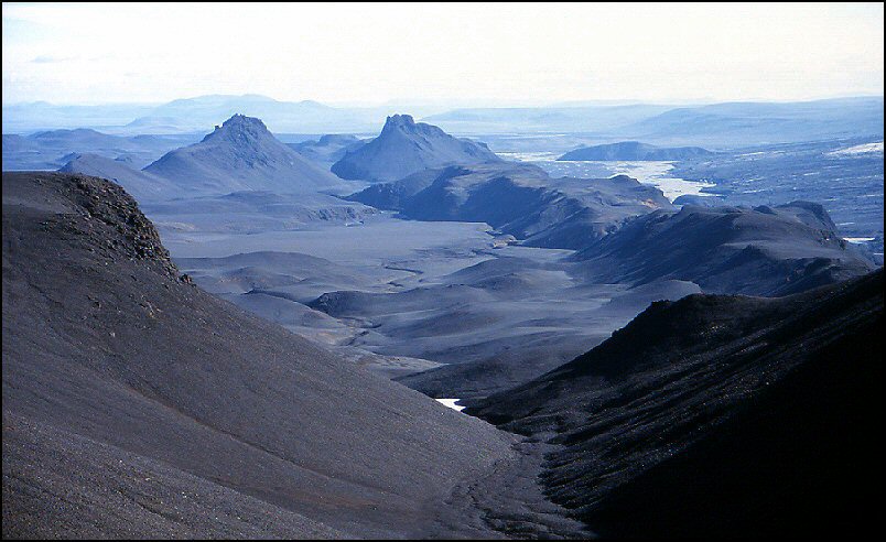 (Rechts der Westrand des Brúarjökulls und der Gletscherfluß Kreppa)