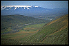 Im Abstieg von der Paßhöhe kommt zuerste eine etwas unangenehme Querung von steilen Altschnee- und grobblockigen Geröllfeldern. Dann folgt der lange, breite Rücken, der den Südrand des Jökuldalurs bildet. An seinem Ende kann ich schon die leuchtend roten Dächer der beiden Hütten von Nýidalur erkennen. Aber man darf sich nicht täuschen lassen. Das sind noch 8 km und zwei ordentliche Gegenanstiege dort hinunter. Der Blick auf den wie in einer Auslage präsentierten Hofsjökull und auf die steile Schlucht Kaldagil, welche mit ihren Gletscher die Südflanke des Tungnafell durchschneidet, bietet Abwechslung genug. Den letzten Berg auf dem Rücken spare ich mir schließlich und steige steil und weglos nach Süden ab. Meine Knie sind nicht gerade begeistert über diese Tortur. Mit jedem Höhenmeter weniger nimmt die Wärme zu. Dann noch über die gewalzte Piste des Behelfslandeplatzes und dann den letzten Kilometer über die staubige Sprengisandurpiste zu der Hütte von Nýidalur. "Sailing home ..." wieder mal habe ich den alten Ohrwurm im Kopf und gröle vor mich hin - solange ich sicher sein kann, daß mich niemand hört. Zieleinlaufstimmung!