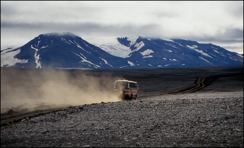 Hochlandbus zwischen Fjóršungsvatn und Tómasarhagi auf der Fahrt nach Süden