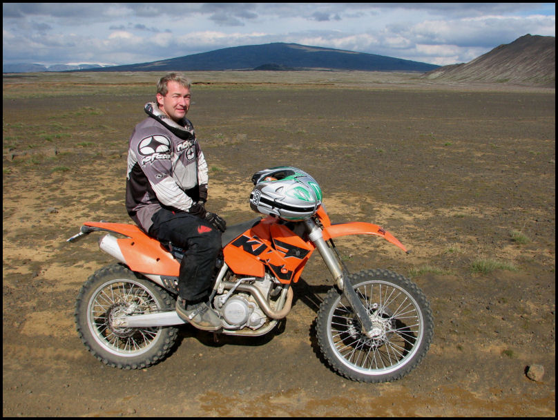KTM, im Hintergrund der Schildvulkan Skjaldbreiður