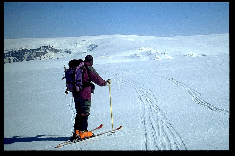 Die flache Abfahrt vom Eyjafjallajökull zum Fimmvöršuháls.