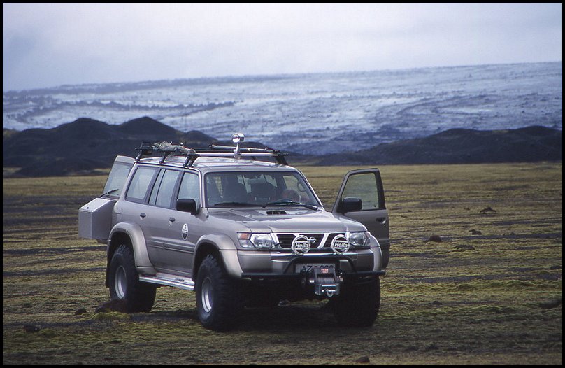Nissan Geländewagen der Vatnaælingar vor dem Tungnaárjökull