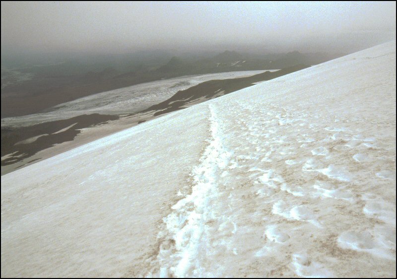 Langafönn - an der Wolkengrenze kreuze ich die Aufstiegsspur.