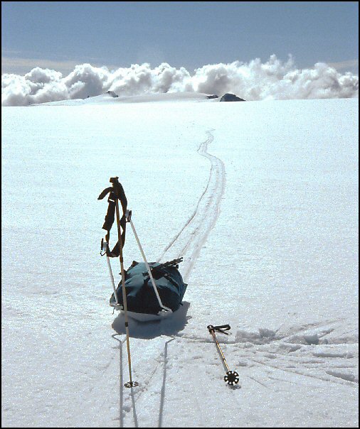 Optimale Schneeverhältnisse am Morgen: die Pulka gleitet nur auf ihren Kufen